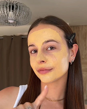 „Ich war anfangs skeptisch, aber die Kurku-ma-Maske hat meine Erwartungen wirklich übertroffen! Ich habe schnell bemerkt, dass meine Haut superweich ist und strahlt! Meine Haut sah noch nie so schön aus!“